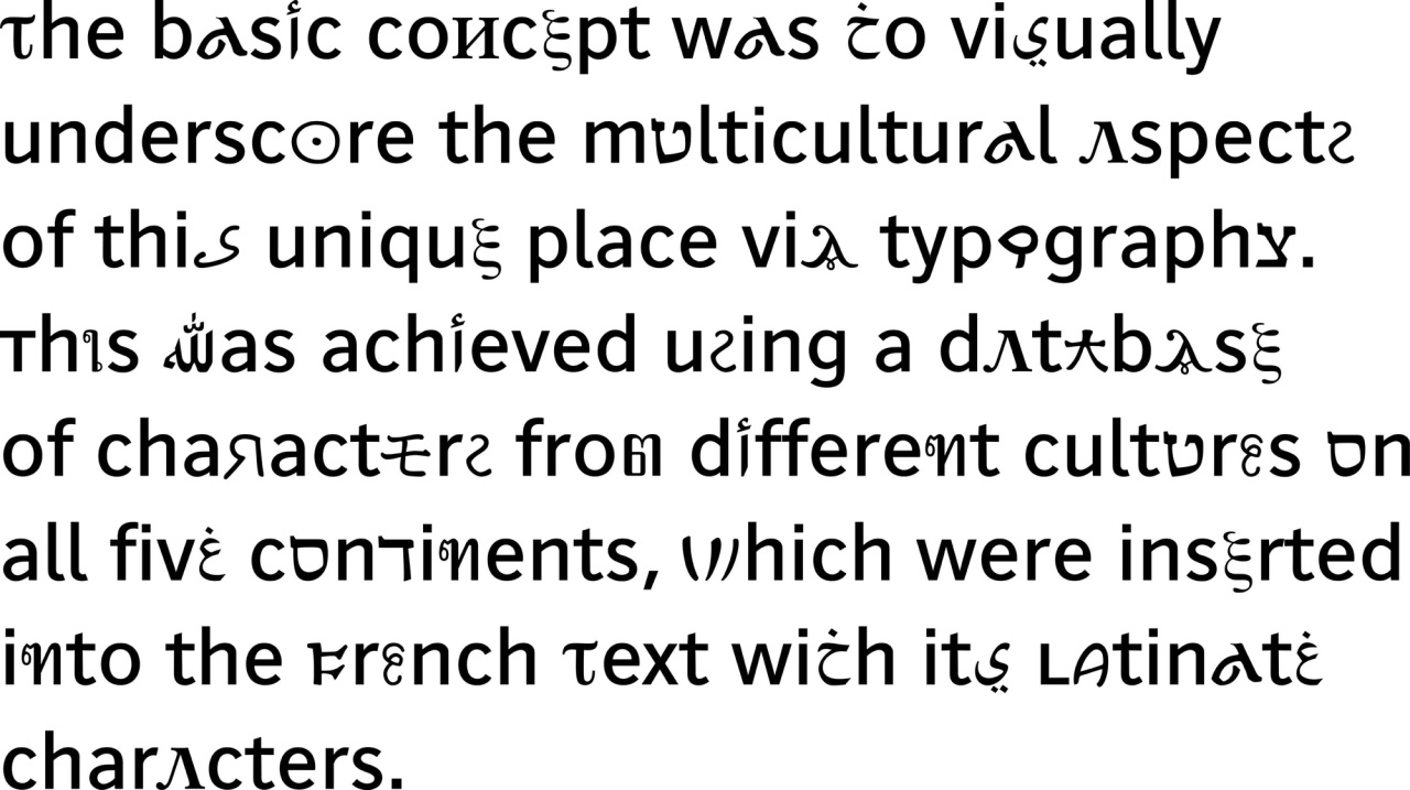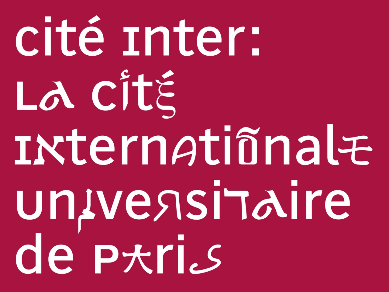 In 2002, André Baldinger worked on a custom typeface adapted to the new visual identity and the signage system designed by Intégral Ruedi Baur Paris for the Cité Internationale Universitaire de Paris, which opened in 2004.