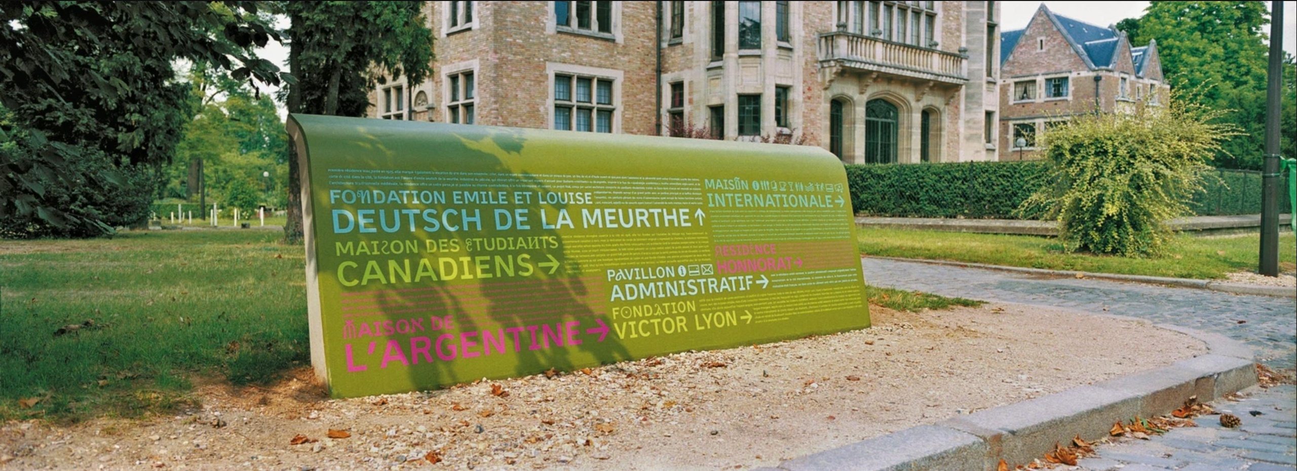 Integral Ruedi Baur Paris studio designed this new visual identity and signage with a dual objective: to enhance the value of this architectural and urban heritage and to make the Cité Internationale more accessible to all by orienting and informing students and visitors in this complex and vast site, where buildings alternate with green spaces.
